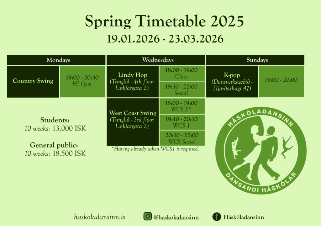 Can I have this dance? Háskóladansinn is the University Dance Club, and our Spring semester starts on January 19th!